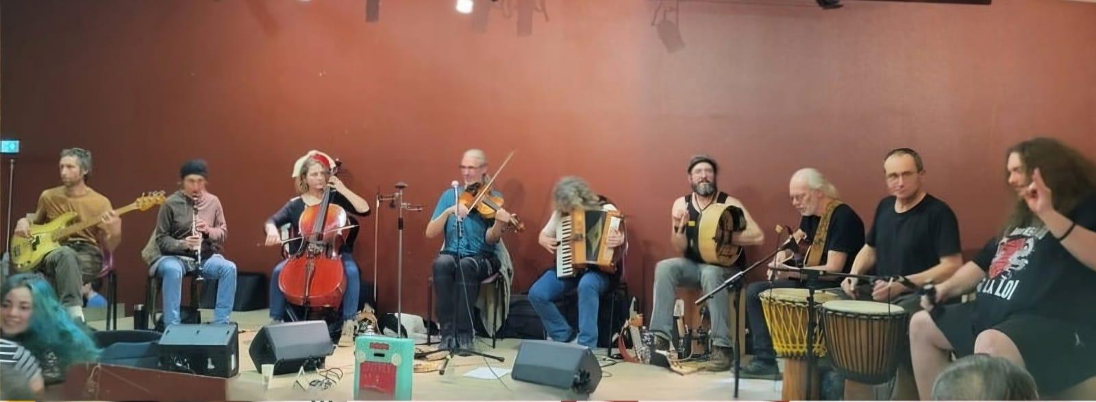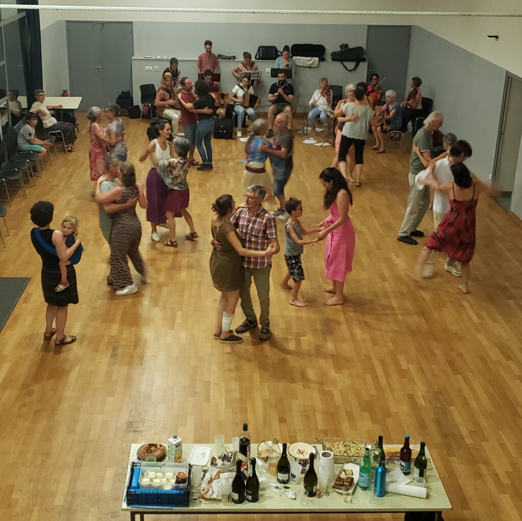 Encore une saison qui se termine à Assier ! Les musicien.ne.s de l'ensemble Trad de la Vallée du Célé, emmené.e.s avec talent par Benoît Pradines, nous ont animé le bal avec énergie. Pas moins de trois accordéons, quatre violons, deux flûtes traversières, un whistle, une guitare, une contrebasse, une clarinette, un saxo et un cajón pour ambiancer les danseureuses !